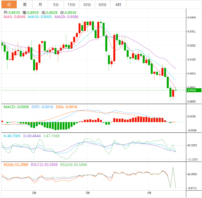 ÖÜÒ»ÅÌÖУ¬ÃÀÔª¶ÒÈðÀÉϵøÖÁ0.8936£¬µø·ù0.04%¡£