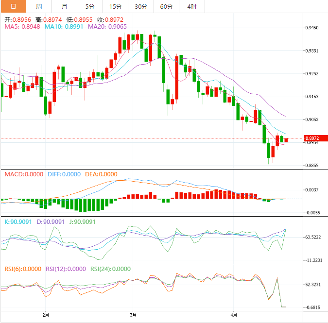 如果该资产决定性地突破23.6%斐波拉契回撤位0.9000附近,美元多头将推动该资产跌至4月7日低点0.9034,随后是38.6%斐波拉契回撤位0.9082。