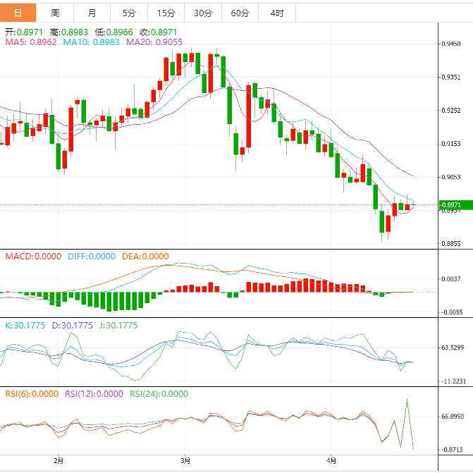 周四亚洲时段,美元兑瑞郎从0.8970开始反弹。尽管美元指数表现低迷,但瑞士法郎资产已成功抵御进一步下行,并已反弹。