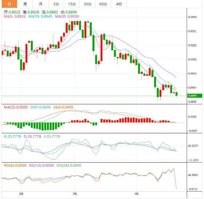 美元兑瑞郎周一再次受到抛售压力,并在欧洲盘前半段跌至一周低点。该货币对目前位于0.8900关口下方,仍在本月早些时候触及的2021年1月以来最低水平的打击距离之内。