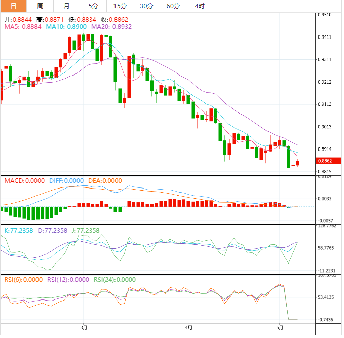 预计今天的交易区间在0.8760支撑位和0.8900阻力位之间。