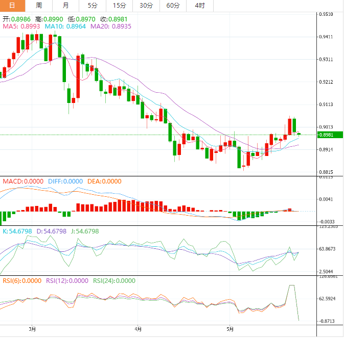 周一亚洲时段,美元兑瑞郎艰难维持在近期支撑位0.8980上方。瑞郎在回调至心理阻力位0.9000附近后有所回落。