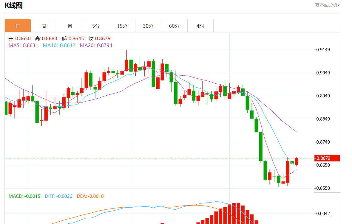 支撑位:0.8710 0.8695 0.8680