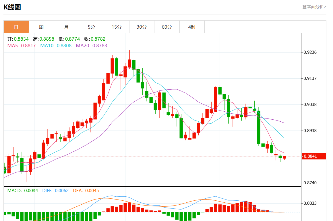 支撑位:0.8880 0.8865 0.8850