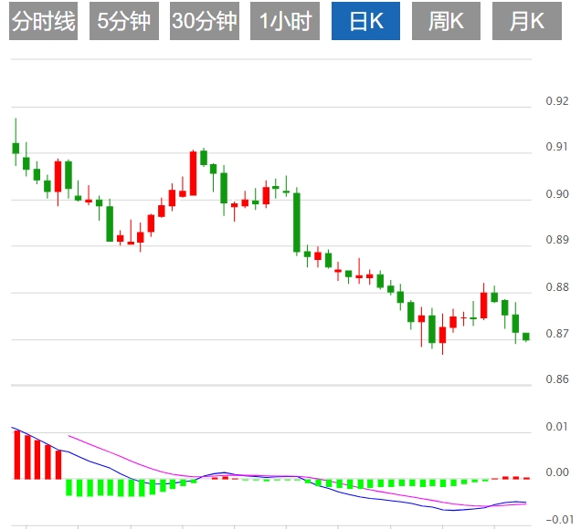 今日预期交易区间在0.8590支撑位和0.8740阻力位之间。