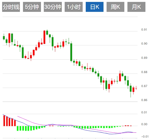 今日预期交易区间在0.8620支撑和0.8745阻力之间。