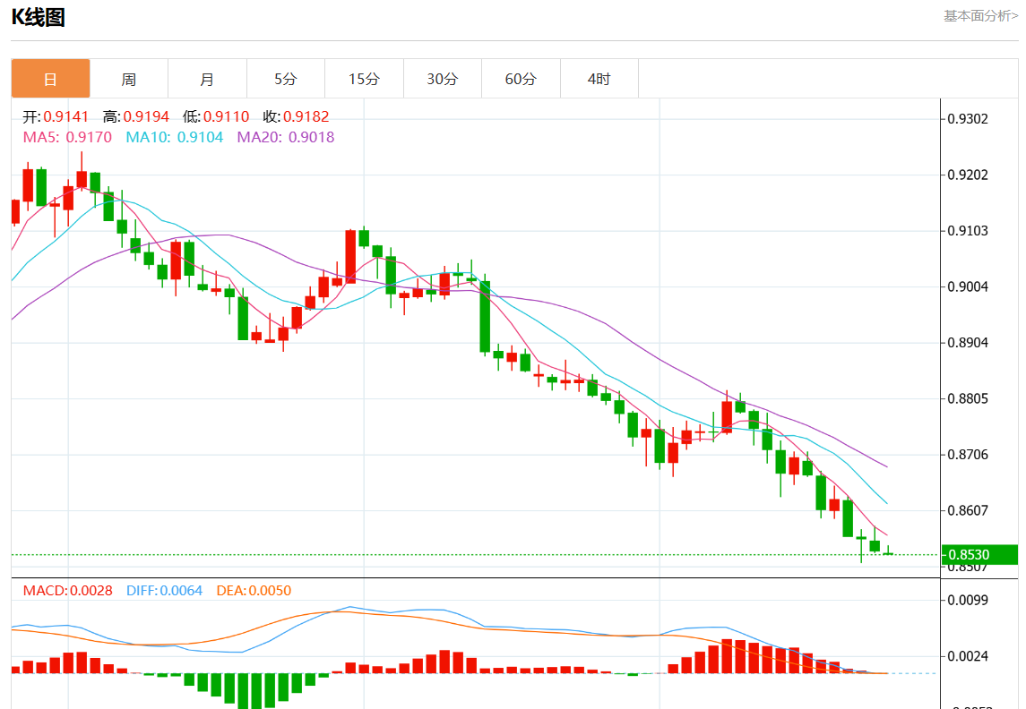 支撑位:0.8600 0.8580 0.8555