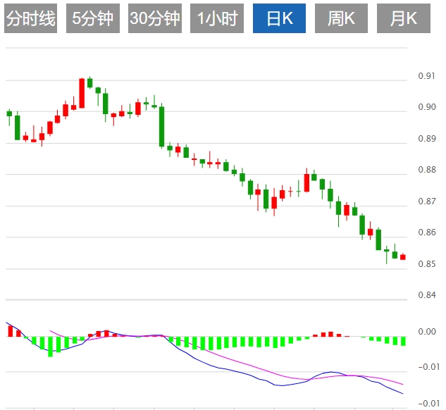 美元/瑞郎相对平静,周三欧洲早盘徘徊在0.8540附近。避险情绪的加剧似乎导致对瑞士法郎(CHF)等避险货币的需求增加。