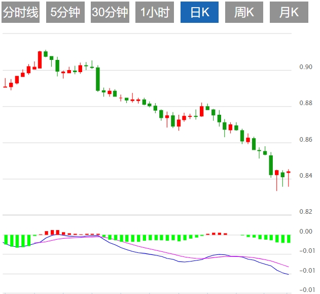 今日预期交易区间在0.8380支撑位和0.8520阻力位之间。