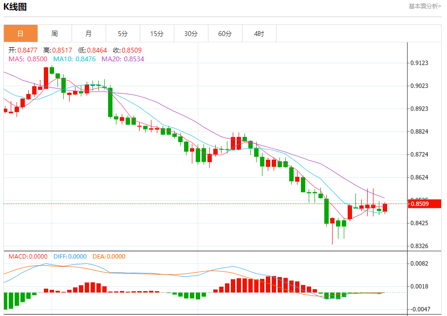 预计今天的交易区间在0.8420支撑和0.8550阻力之间。