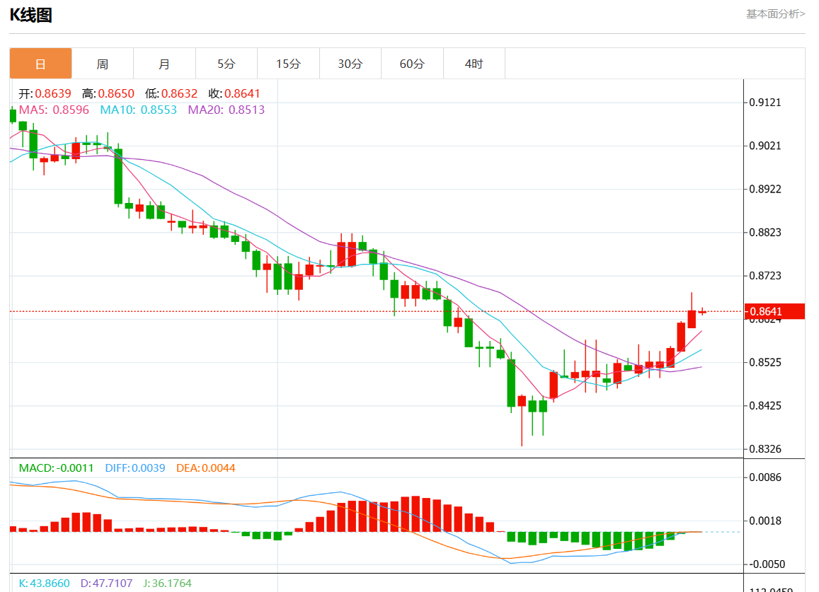 支撑位:0.8700 0.8685 0.8665