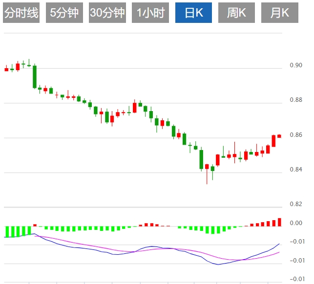 今天的预期交易区间在0.8580支撑位和0.8720阻力位之间。