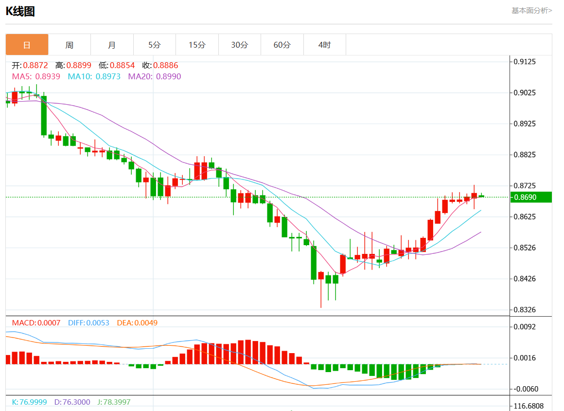 今日分析:在0.8680上方做多头,目标在0.8705和0.8720。