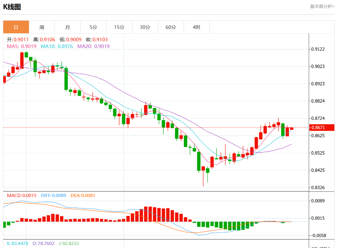 支撑位:0.8725 0.8705 0.8685