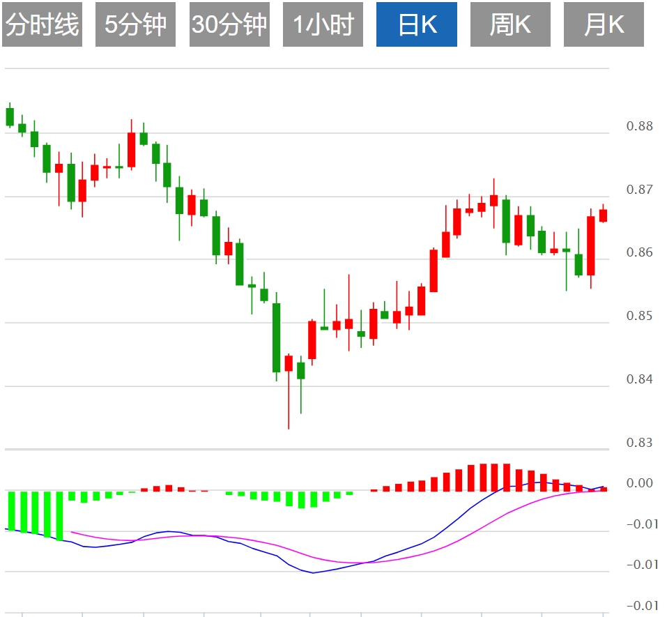 今天的预期交易区间在 0.8610 支撑位和 0.8760 阻力位之间。
