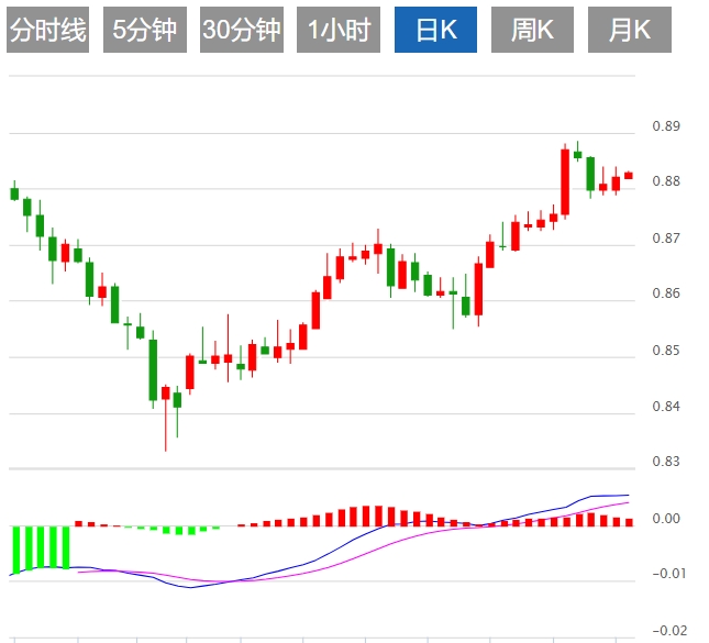 今天的预期交易区间在 0.8740 支撑位和 0.8870 阻力位之间。