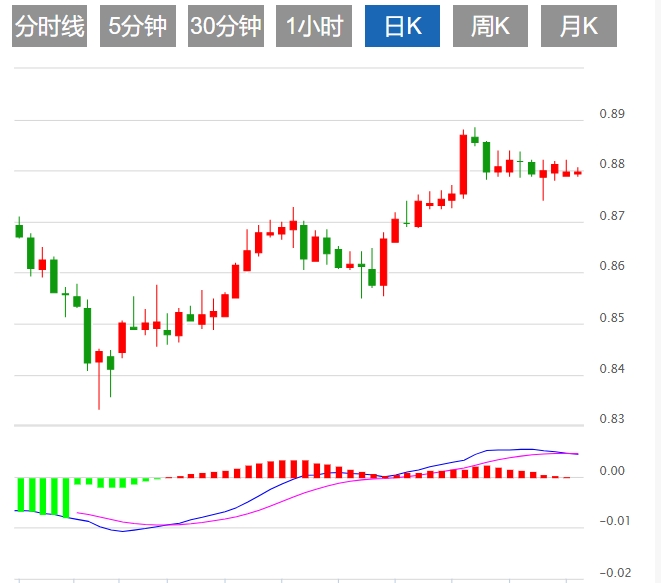 美元/瑞郎技术分析:升至0.8800附近