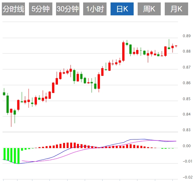 技术上,由于位于0.8821的20期指数移动平均线(EMA)走高,近期前景看涨。14期相对强弱指数(RSI)进入60.00-80.00的看涨区间,显示正向动能已被触发。