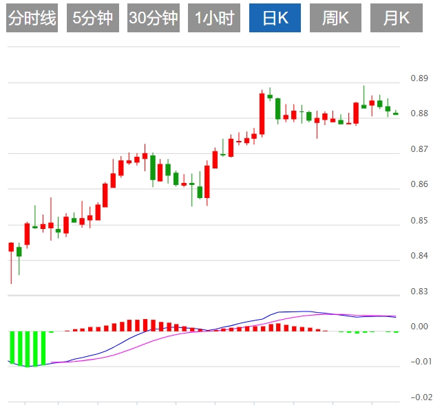 今日预期交易区间在0.8770支撑位和0.8900阻力位之间。