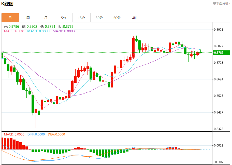 今天的预期交易范围在0.8690支撑和0.8850阻力之间。