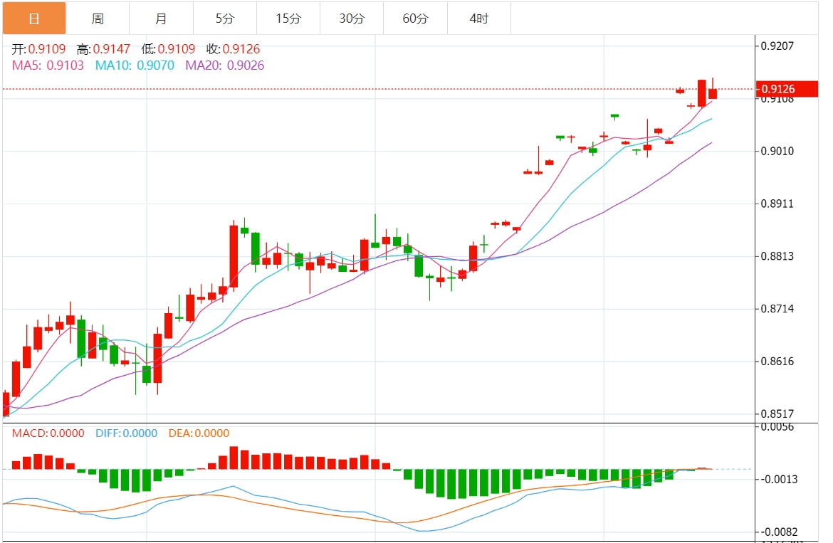 美元/瑞郎汇率走势分析:多头目标突破0.9150 关注美国零售销售数据