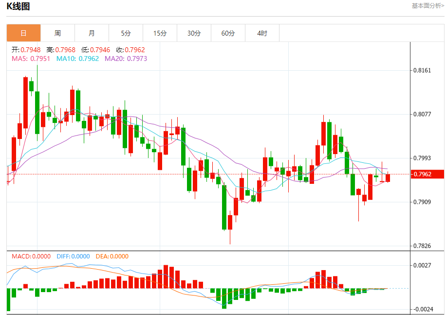 周五纽盘,瑞郎兑美元交投于0.7964,涨幅为0.16%。