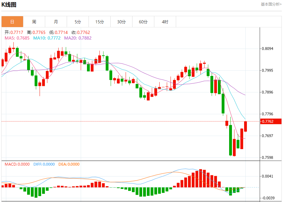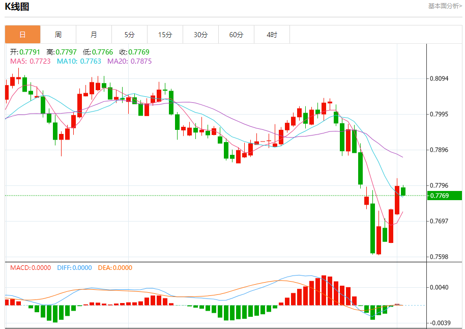 周二纽盘,瑞郎兑美元交投于0.7771,跌幅为0.33%。