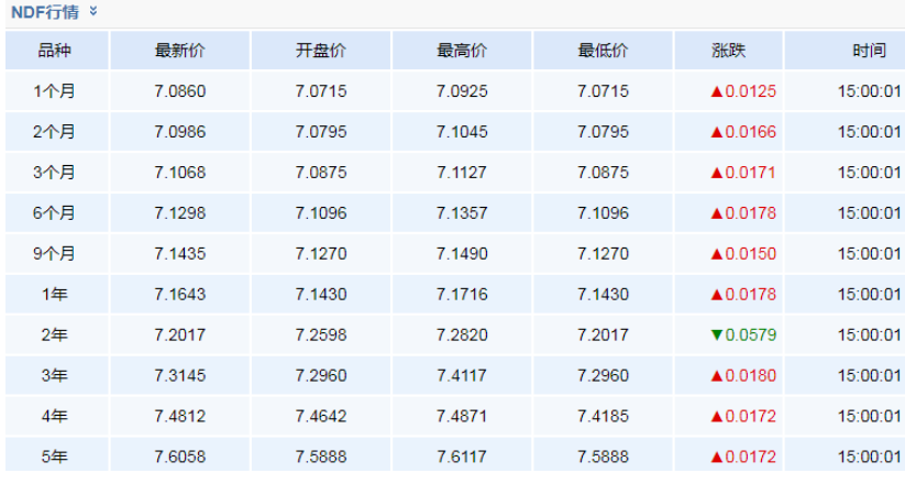 人民币NDF市场远期外汇合约汇率查询(2019年9月19日)