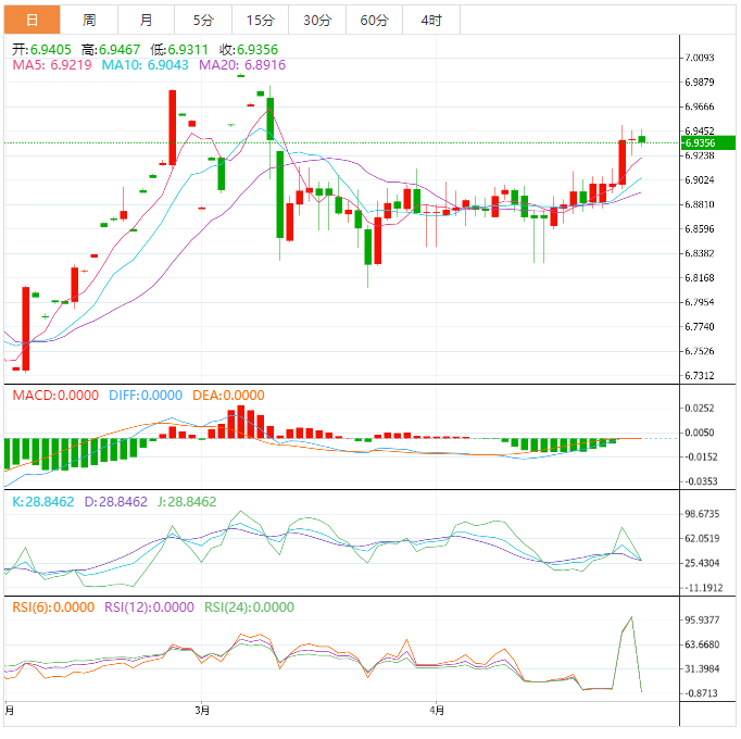 相反,如果向上突破6.9650,将毫不犹豫地挑战3月份创下的年度高点6.9970左右。