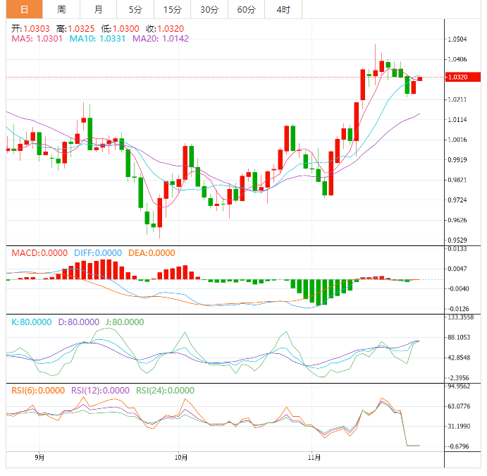 周三亚洲时段,欧元兑美元在1.0320附近温和上涨,买盘保持了前一天从一周低点反弹的势头。