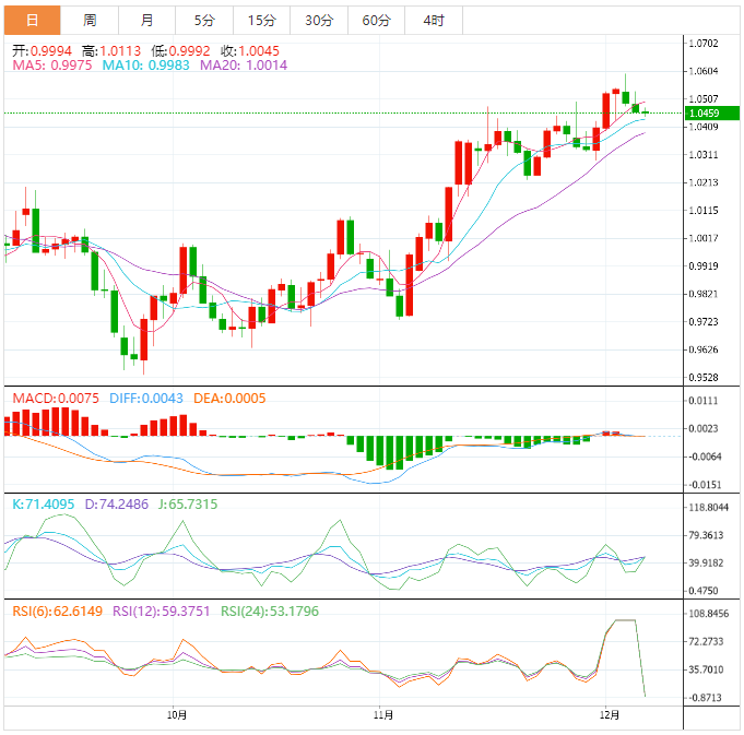 今天预期的交易区间位于1.0360支撑位和1.0520阻力位之间。