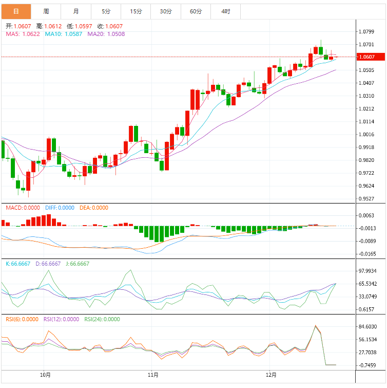 欧元兑美元空头仍有希望,因为10日移动均线(截至发稿时约为1.0585)的修正反弹未能突破11月30日以来的支撑线,最晚接近1.0655。