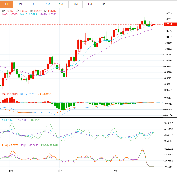 欧元基本面:欧元/美元经历最新震盪后依然徘徊于1.0600附近,汇价在周二欧市早盘自盘中高点回撤。在担忧不一以及数据清淡的背景下,该货币对的最新行情可能与美元震盪有关。不过德国11月PPI(预计年率下降2.6%,前值下降4.2%)以及美国11月营建许可和新屋开工将决定汇价短期走势。欧元/美元日线维持看跌倾向,并可能继欧元/美元反弹突破1.0610后出现反转。随后欧元/美元关键阻力位处在1.0660。另外,1.0575 - 80是关键区域,若欧元/美元跌破这一低位,将打压欧元。