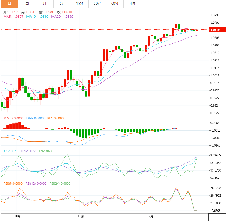欧元兑美元在周五亚洲交易时段回落至1.0590,周四尾盘从短期关键支撑位上的修正反弹消退。