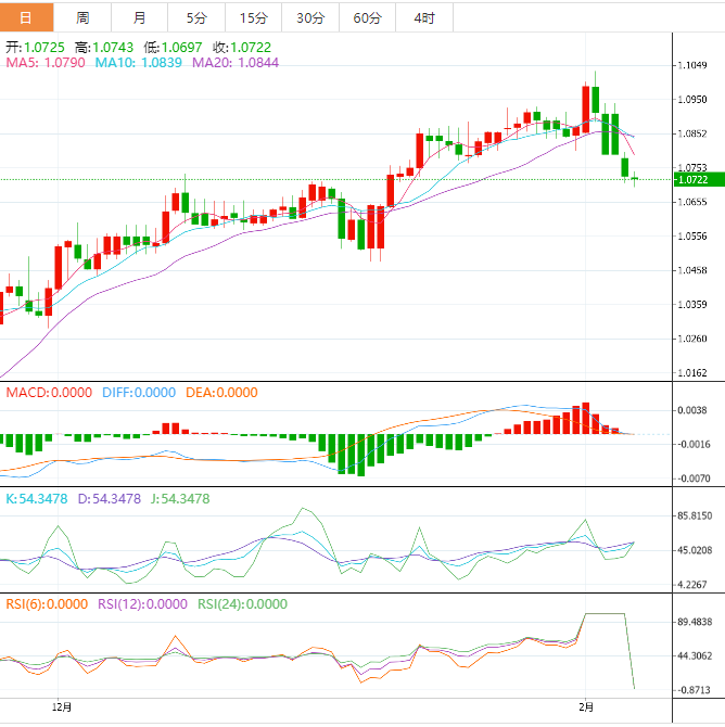欧元兑美元连续第四个交易日下跌,周二短暂探测1.0700支撑位下方区域。