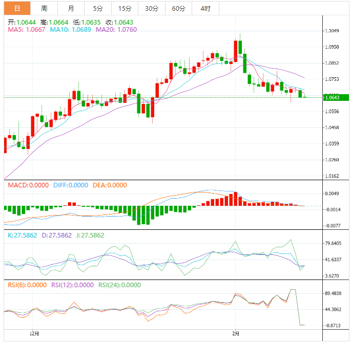 周三欧洲市场盘中,欧元兑美元波动在1.0650 - 40区间徘徊。
