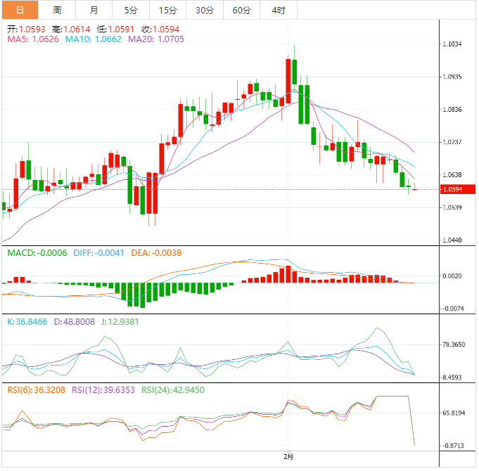 周五盘中,欧元兑美元上涨至1.0594,涨幅0.01%。