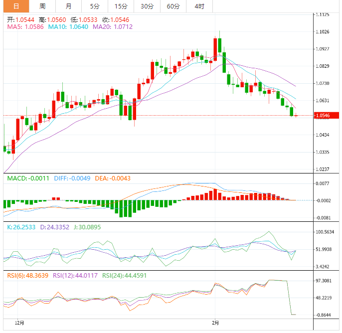 周一盘中,欧元兑美元上涨至1.0548,涨幅0.03%。
