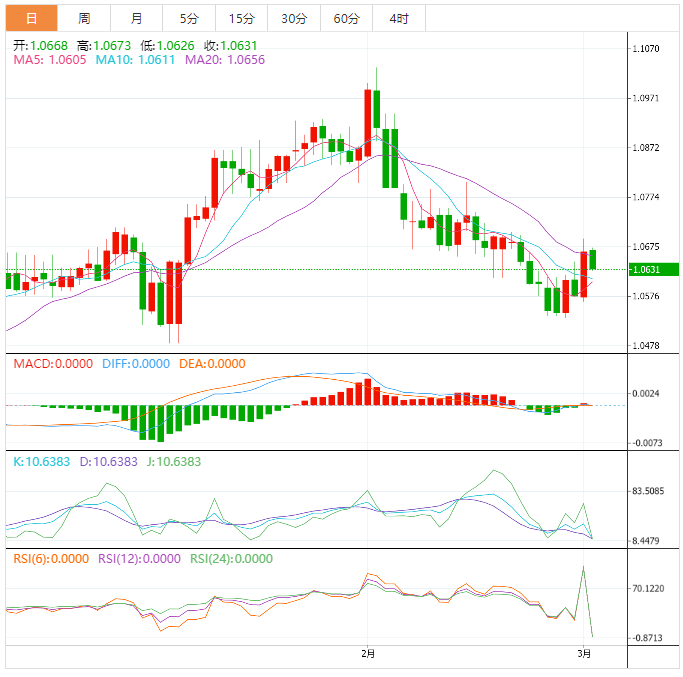 周四盘中,欧元兑美元日内交易下跌0.33%,报1.0628。