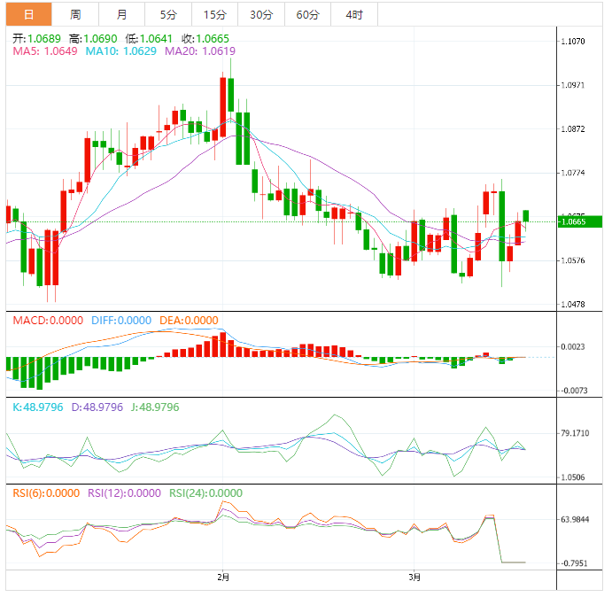 周一盘中,欧元兑美元下跌至1.0665,跌幅0.21%。