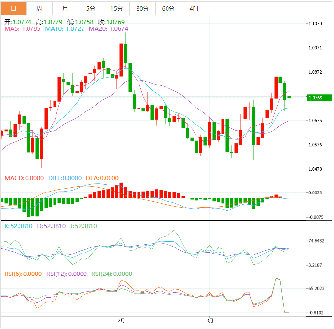 欧元兑美元从盘中高点出现180度大转弯,在周一亚洲市场中段下跌至1.0770。