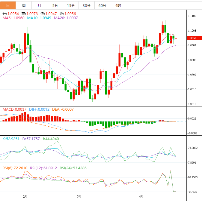 周四盘中,欧元兑美元上涨至1.0958,涨幅0.03%。