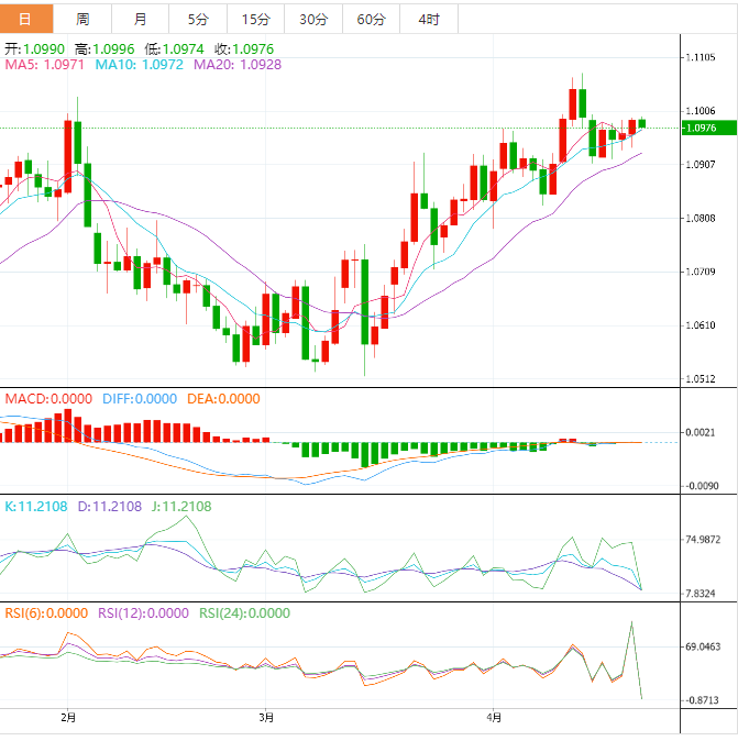 欧元兑美元在两小时内以上升三角形图形形式拍卖。欧元在试图突破上述图表形态的水平阻力位时面临压力,该图表形态从4月17日的高点1.1000开始绘制。该图表形态的前进趋势线位于4月19日的低点1.0917。