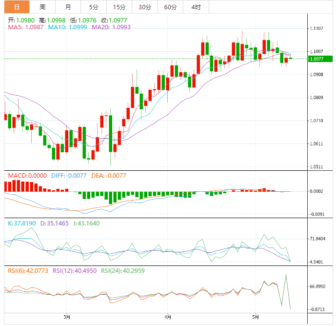 尽管最近出现反弹,但21日移动均线和一周前下行阻力线在1.1000附近的汇合限制了欧元货币对的短期上行空间。
