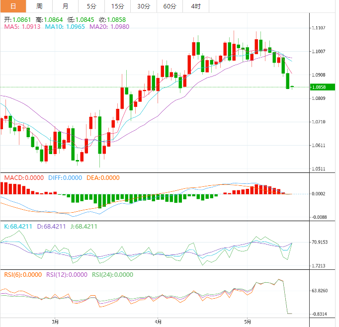 欧元兑美元在1.0850附近守住了较低的区域,空头在周一早些时候刷新了月低点后稍作喘息。