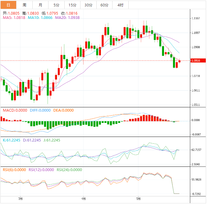 到目前为止,欧元兑美元在1.0800处下跌了0.04%,并面临着1.0759(5月19日的月最低价)的直接竞争,其次是1.0712(3月24日的最低价),最后是1.0516(3月15日的最低价)。