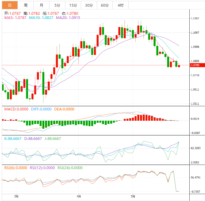 在此之后,不能排除快速上涨至200-HMA和5月中旬低点的可能性,分别接近1.0835和1.0845。