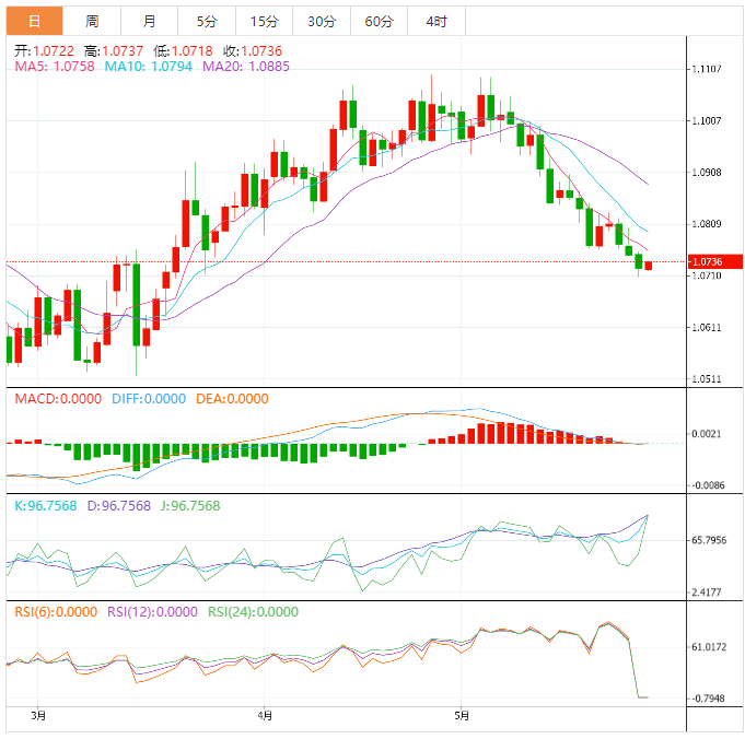 欧元兑美元在3月底以来的最低水平盘整了本周的跌幅,周五亚洲时段,欧元兑美元在1.0735附近出现温和买入价。