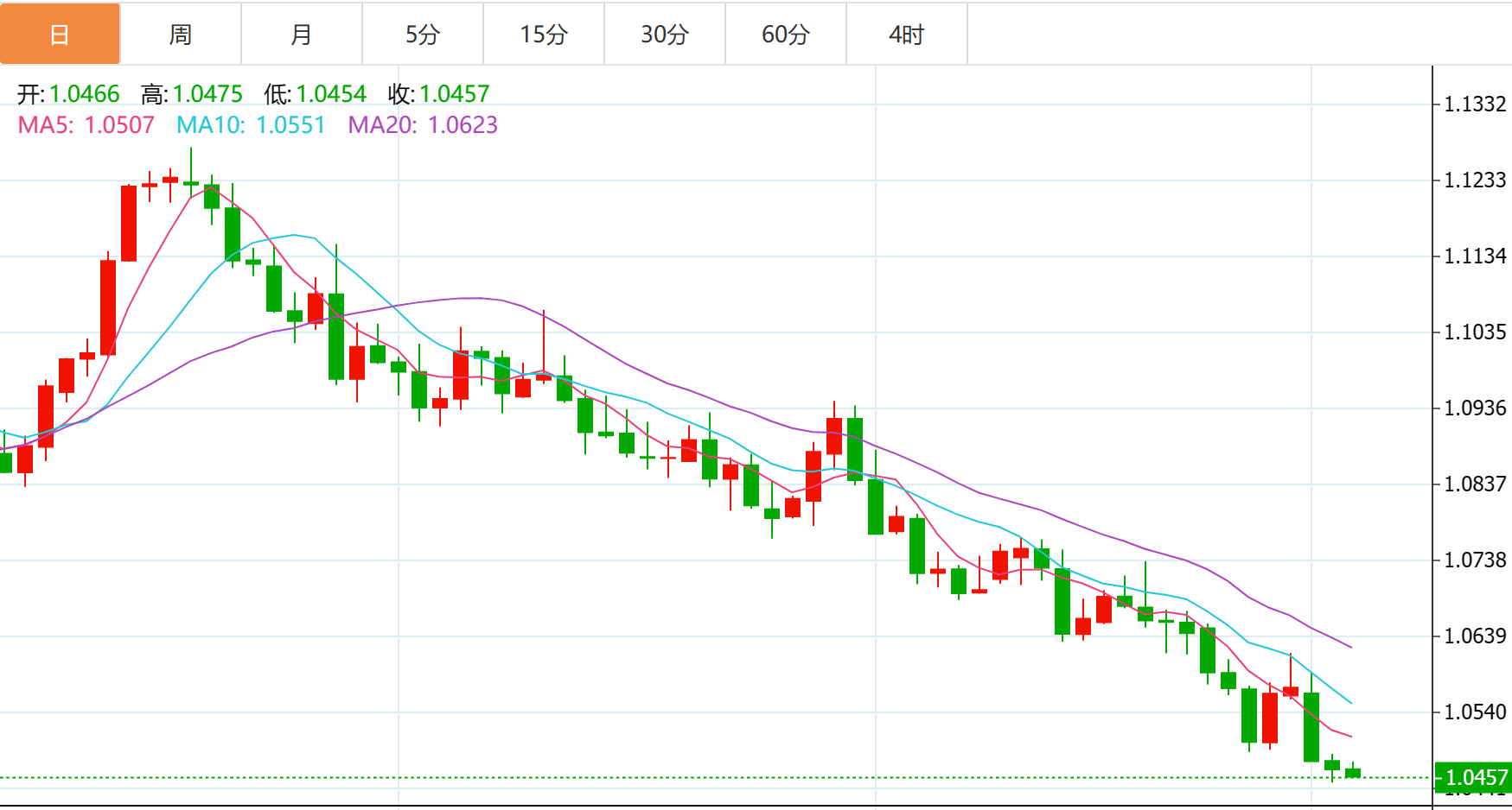 周四欧盘,欧元兑美元仍在1.0450上方处于守势。 汇价自年度低点1.0448反弹,目前交投于1.0467附近,日内上涨0.01%。