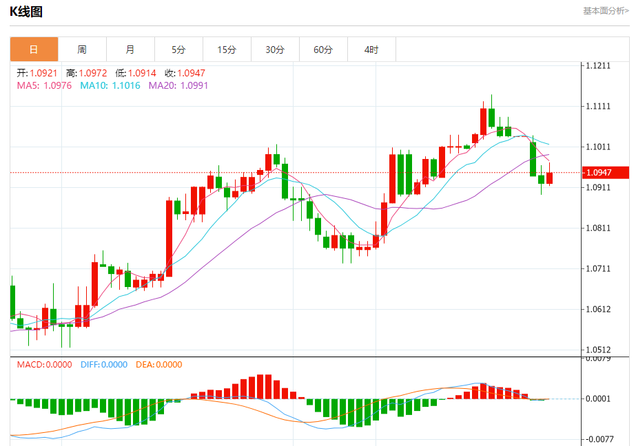 周四欧市盘中,欧元兑美元交投于1.0948,涨幅为0.24%。